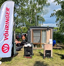 Мы привезли на фестиваль уютную баньку с печью "Оптима ПФ". Гости насладились мягким парением, получили консультации по выбору банных печей и памятные сувениры от "Ферингер". А один из счастливчиков выиграл нашу новинку - отопительную печь "Умка мини".